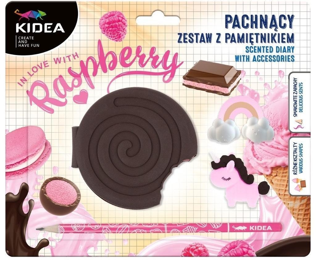 Pamiątnik zapachowy KIDEA to niezwykły produkt, który z pewnością oczaruje każdą dziewczynkę. Jego intensywny malinowy zapach sprawia, że każdy zapis staje się prawdziwą przyjemnością, a unikalny kształt ciastka nadaje mu wyjątkowego charakteru. Idealny do notowania marzeń, szkicowania czy przechowywania sekretów, ten pamiątnik to znakomity wybór dla młodych twórców.