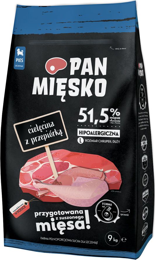Pan Mięsko Cielęcina z przepiórką dla szczeniąt chrupki L 9kg
