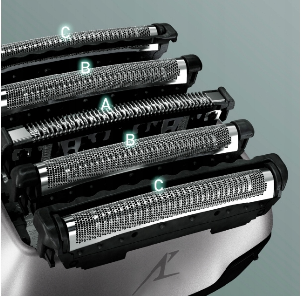 5 specjalnie zaprojektowanych zakrzywionych ostrzy poradzi sobie z zarostem wszelkiego rodzaju: ostrze Quick Slit służy do wstępnego przycinania długich włosów, folia Quick Lift unosi płasko leżące włosy, a folia wykańczająca drugi raz dokładniej przycina dłuższe włosy.