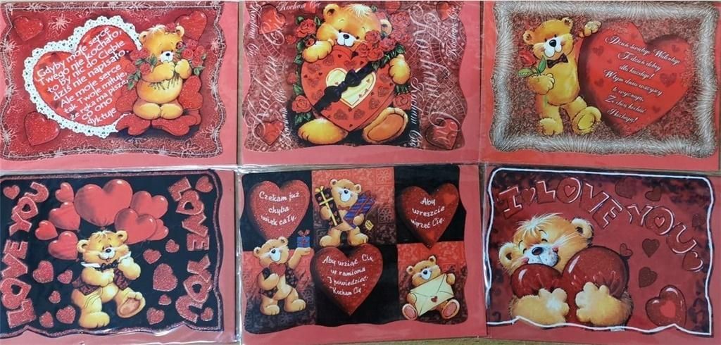 Karnet Walentynki B6 brokat + koperta Panorama. Mix wzorów, wzór wysyłany losowo.