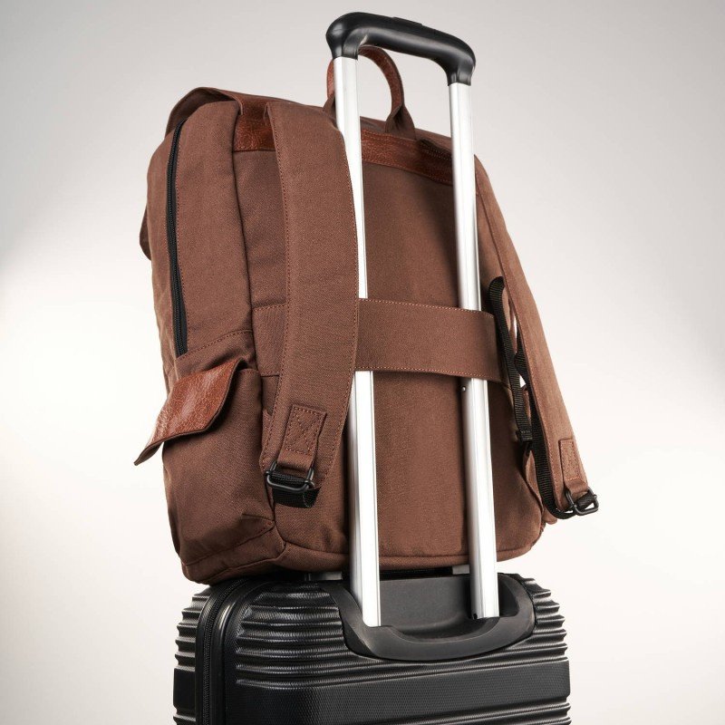 Plecak E-22-BR został zaprojektowany z myślą o podróżnych. Szlufka na tylnej części plecaka umożliwia zamontowanie go na teleskopowym uchwycie walizki, co czyni go doskonałym towarzyszem w podróżach. Dzięki temu możesz łatwo przemieszczać się z plecakiem i walizką jednocześnie.