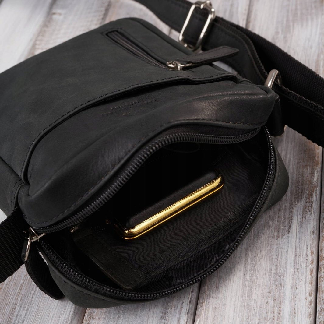 Paolo Peruzzi Saszetka męska na ramię skórzana czarna mała AY-05-HBL