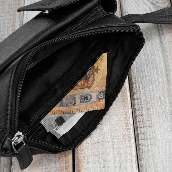 Saszetka została stworzona z myślą o codziennych potrzebach. Posiada jedną główną komorę oraz dwie kieszenie, w tym jedną frontową o wymiarach 19 x 10 cm, co umożliwia łatwy dostęp do najważniejszych rzeczy. Wewnątrz znajduje się kieszonka na zamek oraz skórzany organizer na karty kredytowe, co zwiększa jej funkcjonalność i ułatwia organizację drobiazgów.