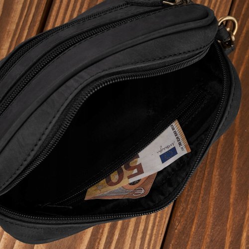 Model T-129-HBL wyposażony jest w jedną główną komorę zamykaną na zamek błyskawiczny oraz cztery praktyczne kieszonki, co ułatwia organizację najpotrzebniejszych rzeczy. Choć nie mieści formatu A4, jej kompaktowe wymiary sprawiają, że jest wygodna w codziennym użytkowaniu, idealna do przechowywania kluczy, portfela czy telefonu.
