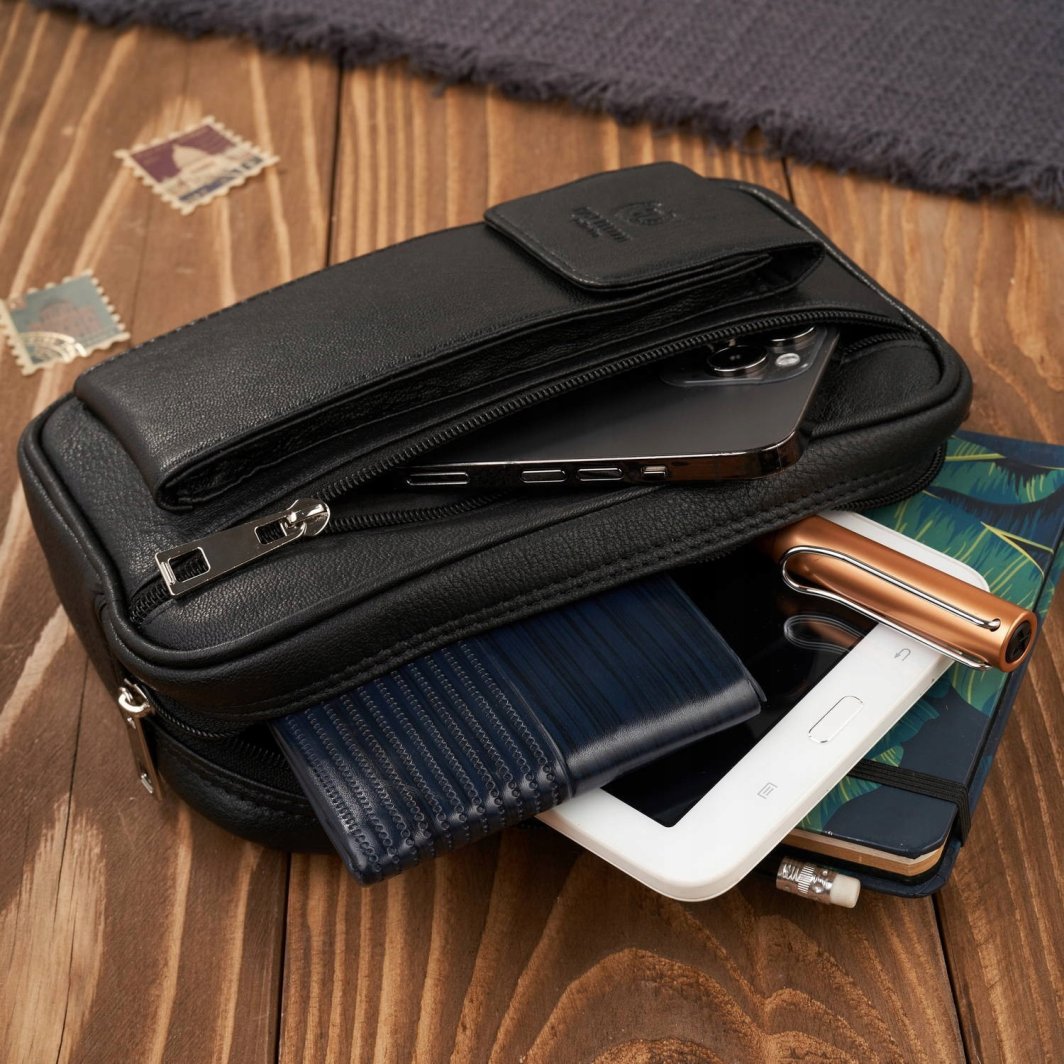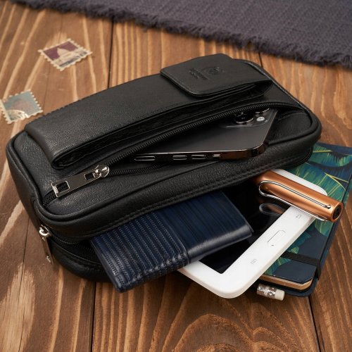 Paolo Peruzzi Saszetka męska skórzana do ręki z miejscem na telefon czarna T-132-BL