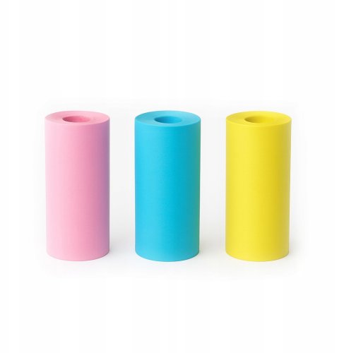 W skład zestawu wchodzą rolki w trzech atrakcyjnych kolorach: niebieskim, różowym oraz żółtym. Taki wybór kolorów umożliwia kreatywne podejście do projektów, pozwalając na tworzenie unikalnych i przyciągających wzrok wydruków.