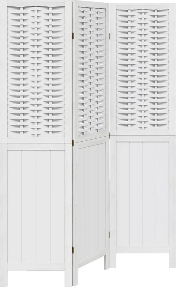 Parawan pokojowy, 3-panelowy, biały, lite drewno paulowni