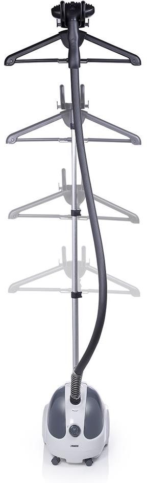 Steamer do ubrań Princess ma poręczny drążek na ubrania, którego wysokość można regulować, dzięki czemu można z taką samą łatwością prasować bluzki lub długie sukienki. Ten praktyczny drążek na ubrania można również regulować na szerokość do bluzek lub topów.