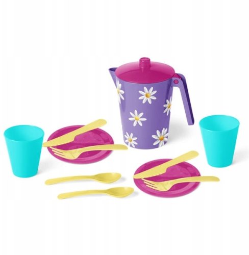 Zestaw składa się z 11 elementów, w tym dzbanka z urokliwą grafiką IML, dwóch kubków, dwóch talerzyków, dwóch widelców, dwóch noży oraz dwóch łyżeczek. Dzięki różnorodności elementów, dzieci mogą swobodnie tworzyć różne scenariusze zabawy, co sprawia, że każda chwila spędzona z zestawem jest wyjątkowa.