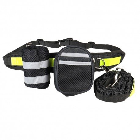 Pas biodrowy do biegania z amortyzowan� smycz�, czarny, L, pasek d�. 80-104cm, saszetka (18x5,5x10cm), smycz d�. 145-200 cm