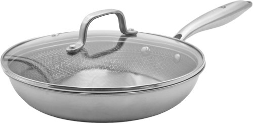 Patelnia stalowa z pokrywką o średnicy 24 cm marki Brunbeste to nowoczesne naczynie kuchenne, które łączy w sobie profesjonalną trwałość oraz wygodę użytkowania. Wykonana z wysokiej jakości stali nierdzewnej, charakteryzuje się wyjątkową odpornością na uszkodzenia mechaniczne oraz wysoką temperaturę. Dzięki innowacyjnej strukturze przypominającej plaster miodu, patelnia zapewnia dodatkową ochronę dla powłoki nieprzywierającej, co czyni ją idealnym wyborem dla każdego miłośnika gotowania.