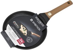 Stylowy, karmelowy uchwyt wykonany z miękkiego w dotyku tworzywa Soft Touch nie tylko zapewnia komfort podczas obsługi, ale także nawiązuje do retro estetyki, dodając całości niepowtarzalnego charakteru. Złote akcenty z logo marki podkreślają elegancję i dbałość o detale, sprawiając, że patelnia przyciąga wzrok i wpisuje się w styl nowoczesnej, a zarazem vintage kuchni.