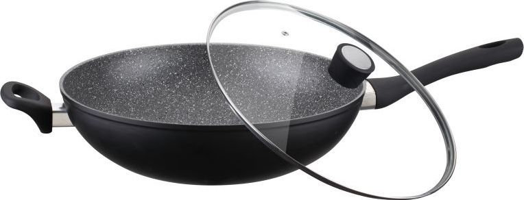 Patelnia / Wok granitowy z pokrywąfirmy PETERHOF z seriinaczyń EMPERIO Cechy: Rozmiar 34 x 9,5cm potrójna powłokagranitowa nieprzywierająca w kolorze szarym materiał: wysokiej jakości kute aluminium uchwyty typu soft touch (pokryte silikonem)czarne pokrywa z odpowietrznikiem możliwość mycia w zmywarce do wszystkich rodzajów kuchenek: gazowej, elektrycznej, ceramicznej, halogenowej, indukcyjnej kolor: czarny Wytrzymałenaczynia z kutego aluminium umożliwiają przygotowywanie potraw bez przywierania i z małą ilością tłuszczu.Potrójna warstwa marmurowa sprawia, żepatelnie są niezwykle odporne na zarysowania. Można w nich przygotować pyszne i zdrowe potrawy, które nie utracą soczystości i walorów odżywczych. Nadają się do wszystkich rodzajów kuchenek: gazowych, elektrycznych, ceramicznych, halogenowych i indukcyjnych.