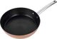 Ochronę przed przywieraniem składników na patelniach Starke Pro Black Copper 20/24/28 cm oparto na jednej z najtwardszych powłok na świecie. Wieloletnie i codzienne użytkowanie produktu możliwe jest dzięki doskonałej trwałości powierzchni smażenia GREBLON® C3+, która zniesie aż 20 000 cykli ścierania. Patelnie zapewnią ci zatem aż 10-krotnie lepszą jakość i funkcjonalność niż klasyczne modele, które mogą wytrzymać zaledwie 2000 cykli ścierania. Dzięki dnu indukcyjnemu o grubości 2,8 mm możesz smażyć potrawy na każdym rodzaju kuchenki, w tym na płycie indukcyjnej. Patelnie otrzymały maksymalną ocenę w ogólnych testach jakości (6/6 gwiazdek!), dlatego sprostają nawet profesjonalnemu użytkowaniu. Co więcej, przeszły testy pod czujnym i zawodowym okiem oraz w rękach samego Piotra Kucharskiego. Korpus patelni wykonano z kutego aluminium typu forged, które charakteryzuje się podwyższoną trwałością i bardzo dobrze przewodzi ciepło. Dno z tłoczonymi pierścieniami dodatkowo separuje składniki od tłuszczu i ułatwia równomierne rozprowadzenie go po powierzchni smażenia. Surowy i nowoczesny design patelni Black Copper podkreśla efekt młotkowania (tzw. hammering) zewnętrznej powierzchni korpusu oraz jego piękna, miedziana barwa. Ich modny kolor, pomimo swojej surowości, pasuje do wszystkich wnętrz. Użycie w piekarniku patelni Black Copper powoduje wypalanie stali nierdzewnej, dlatego ich rączki mogą w tym czasie zmienić barwę na żółtawą (zjawisko to nie ma wpływu na funkcjonalność produktu i jest w pełni naturalne). Otwór w uchwytach pozwala na zawieszenie zestawu np. na relingu, a tym samym oszczędność miejsca potrzebnego do ich przechowywania.
