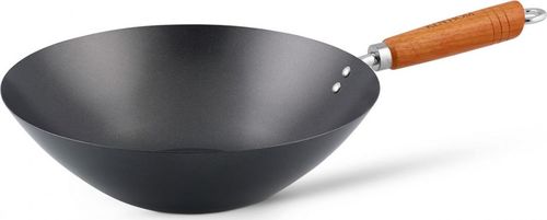 TOM patelnia wok Ugotuj wszystkie swoje warzywa na tej pięknej patelni wok! Ma grubość 1,4 mm, co zapewnia doskonałe przewodzenie ciepła. Patelnia posiada drewnianą rączkę, która nie nagrzewa się podczas gotowania oraz pierścień na końcu, dzięki któremu można ją łatwo powiesić. Patelnia nie nadaje się do mycia w zmywarce, więc nieprzywierająca powłoka pozostaje na Specyfikacja Kolor: czarny, brązowy Materiał: stal, drewno Płeć: unisex Średnica donicy: 31 cm Nadaje się do mycia w zmywarce: nie