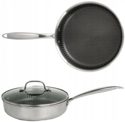 Hybrydowa, wielowarstwowa konstrukcja patelni zapewnia jej wyjątkową trwałość oraz odporność na uszkodzenia. Stal nierdzewna w połączeniu z czystym aluminium sprawia, że patelnia jest nie tylko estetyczna, ale również niezwykle funkcjonalna i odporna na zarysowania.
