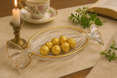 Elegancka patera dekoracyjna wykonana z przezroczystego szkła to propozycja, która łączy oryginalny design i funkcjonalność. Jej wyjątkowy kształt inspirowany zawiniętym cukierkiem sprawia, że przyciąga wzrok i staje się efektownym akcentem na stole.