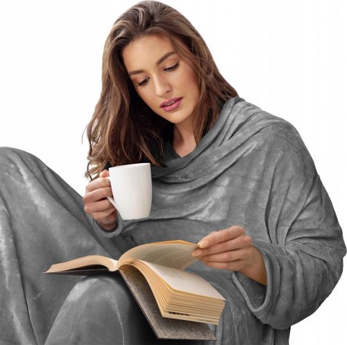 Paulina Łukjaniuk Koc 150 x 180 Mikrofibra Bingie z Rękawami Szary
