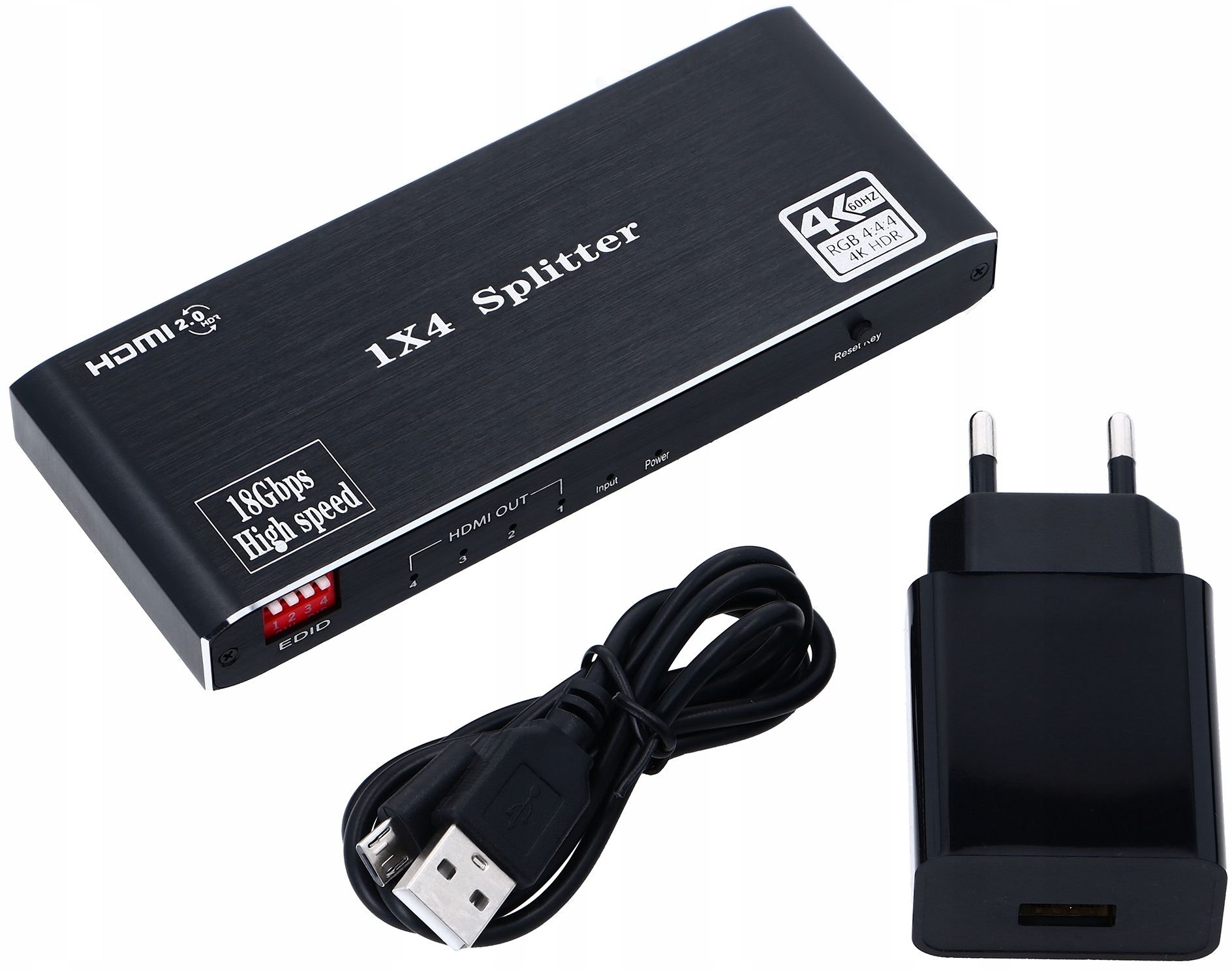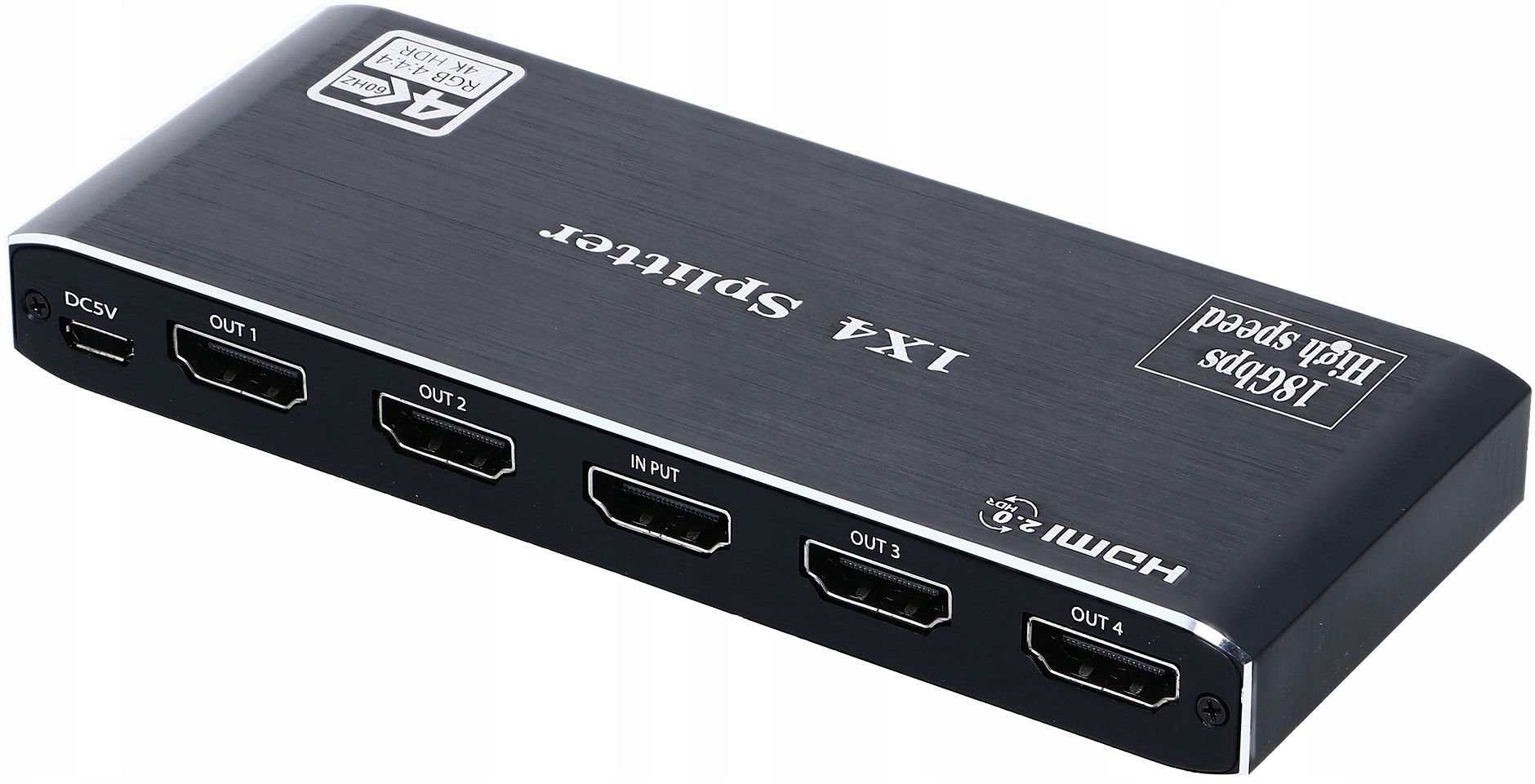 Rozgałęźnik rozdziela sygnał HDMI na 4 odbiorniki