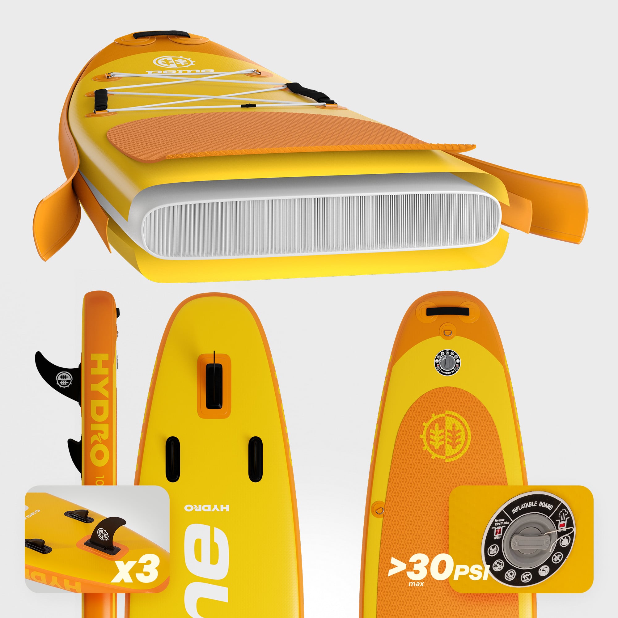 SUP PEME HYDRO ma wielowarstwową budowę, która pomaga utrzymać jego sztywność po napompowaniu oraz zwiększa odporność na codzienne użytkowanie. Zastosowane materiały dobrze znoszą transport, kontakt z wodą i częste składanie sprzętu.