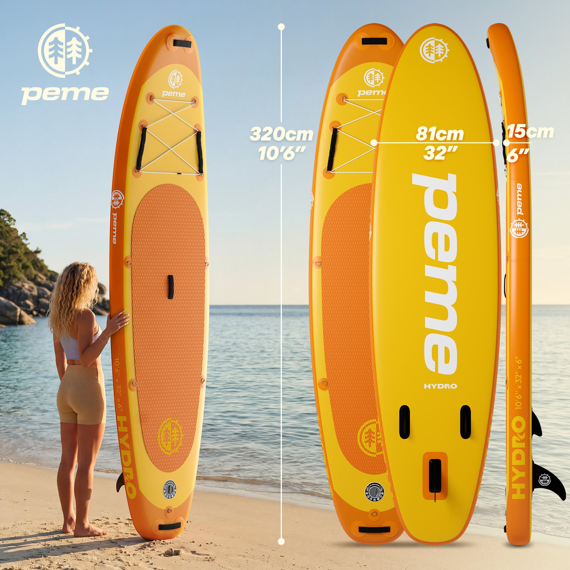 SUP PEME HYDRO o długości 320 cm to deska typu Allround przeznaczona do spokojnych akwenów – jezior, zatok i rzek o łagodnym nurcie.