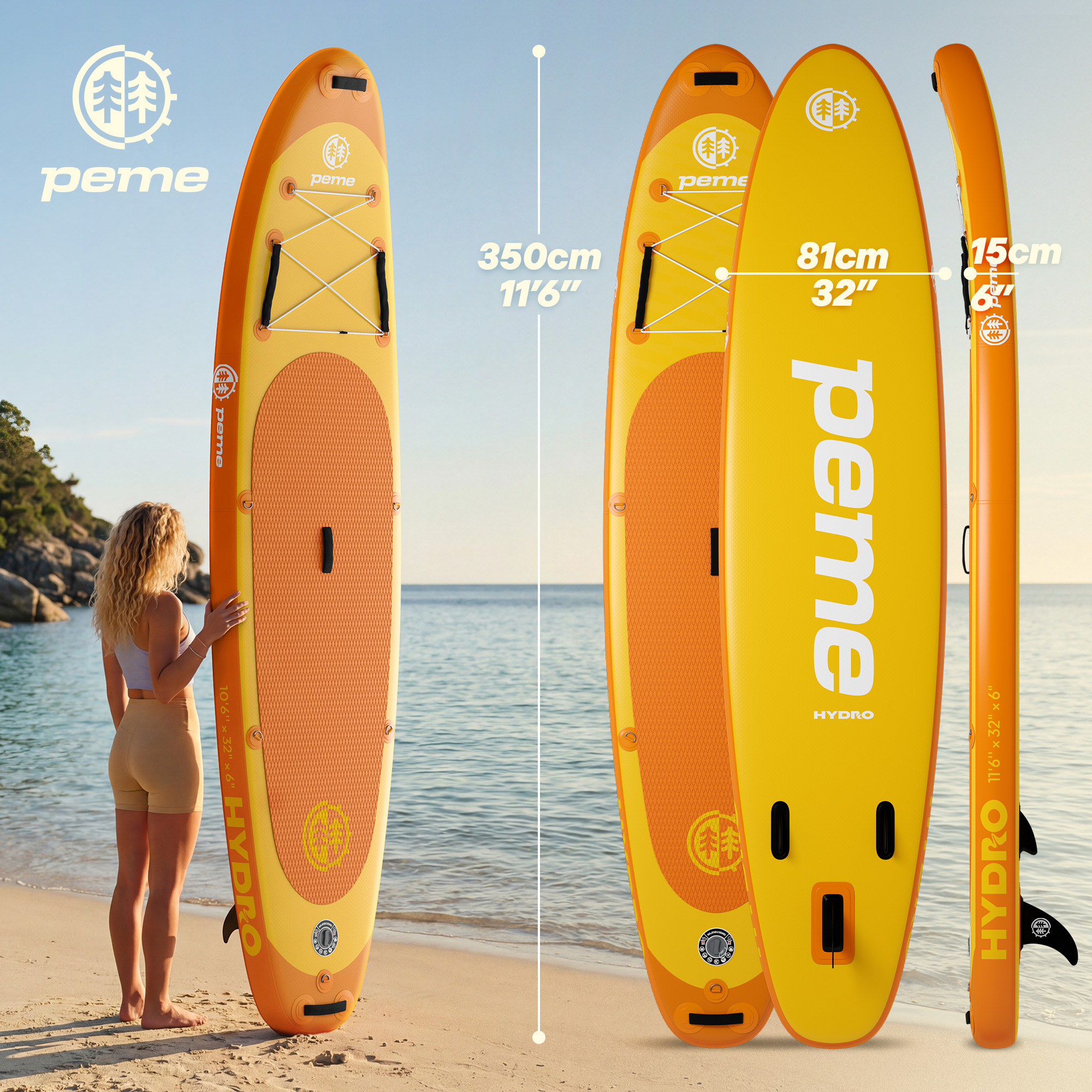 SUP PEME HYDRO o długości 350 cm to uniwersalna deska typu Allround, stworzona do rekreacyjnego pływania na spokojnych akwenach – jeziorach, zatokach oraz rzekach o łagodnym nurcie.