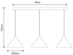 Lampa jest wyposażona w trzy gniazda na żarówki typu E27, co umożliwia dostosowanie oświetlenia do indywidualnych potrzeb. Możesz wybrać żarówki o różnej mocy i barwie światła, aby uzyskać pożądany efekt.
