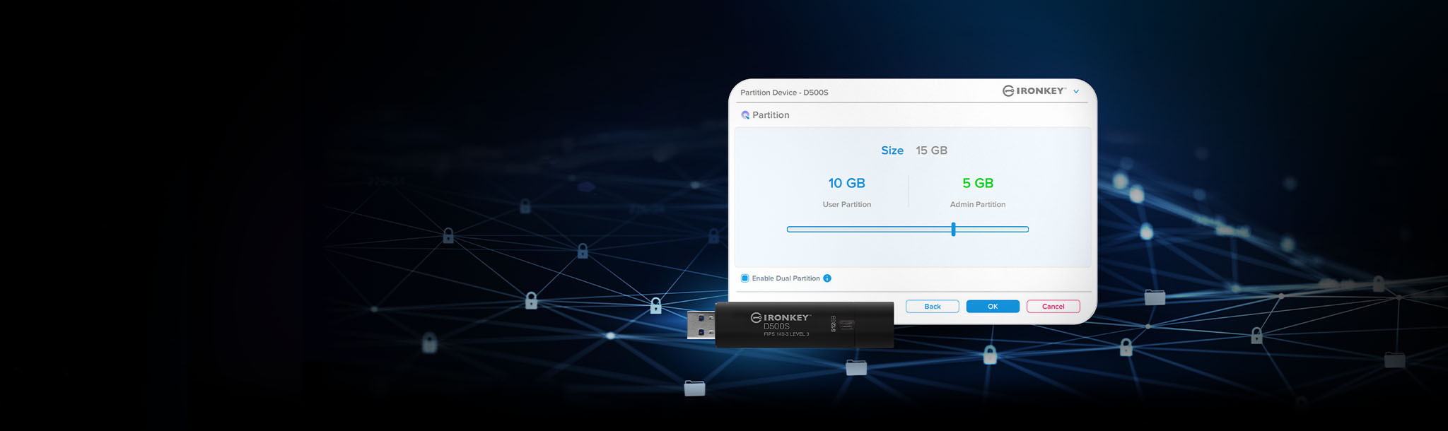 Administrator może utworzyć dwie ukryte partycje o niestandardowym rozmiarze dla administratora i użytkownika. W tak powstałym ukrytym magazynie plików, do którego można uzyskać dostęp tylko w określony sposób, dane pozostają bezpieczne i niewidoczne. Funkcja dwóch ukrytych partycji może zapewnić dodatkowe bezpieczeństwo w nieznanych systemach lub gdy niezbędne jest udostępnienie pamięci.