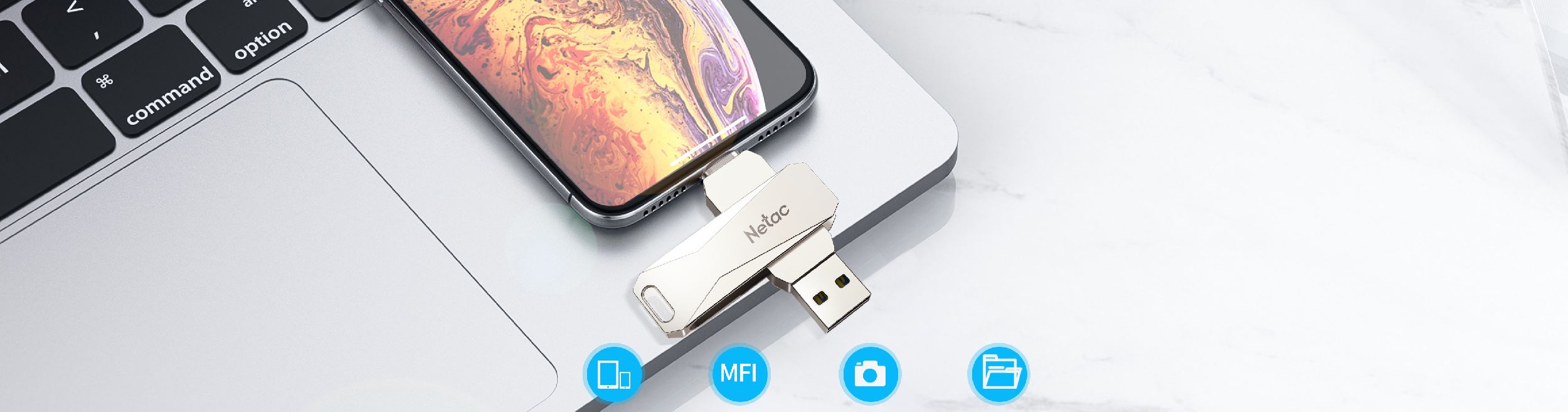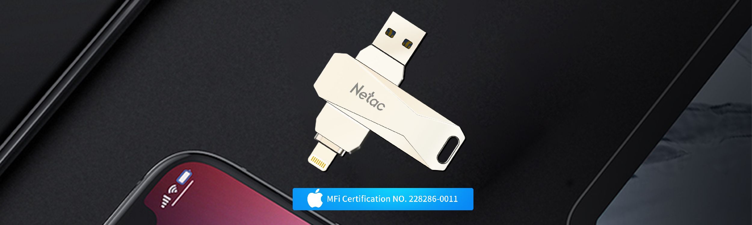 Certyfikat Apple MFi zapewnia znakomitą wydajność na urządzeniach iOS. Z Netac U652 nie napotkasz alertu o niewspieranym akcesorium.