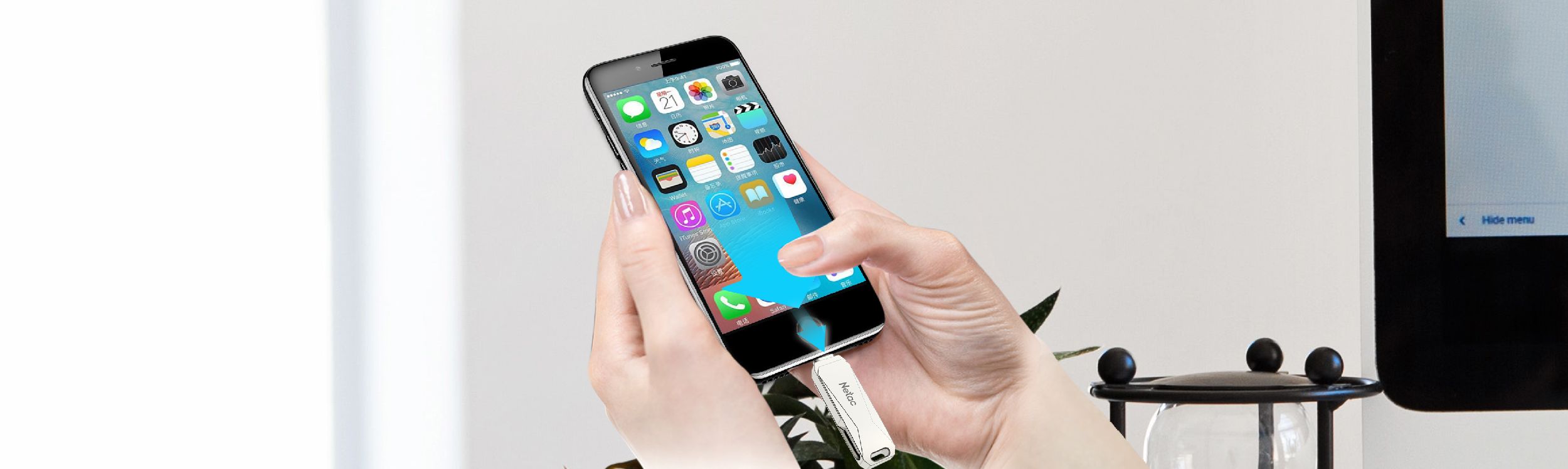 Podłączając iPhone/iPad do pamięci przenośnej, możesz przechowywać zdjęcia i filmy bezpośrednio na U652 bez wykorzystywania wewnętrznej pamięci swojego iPhone'a/iPada.