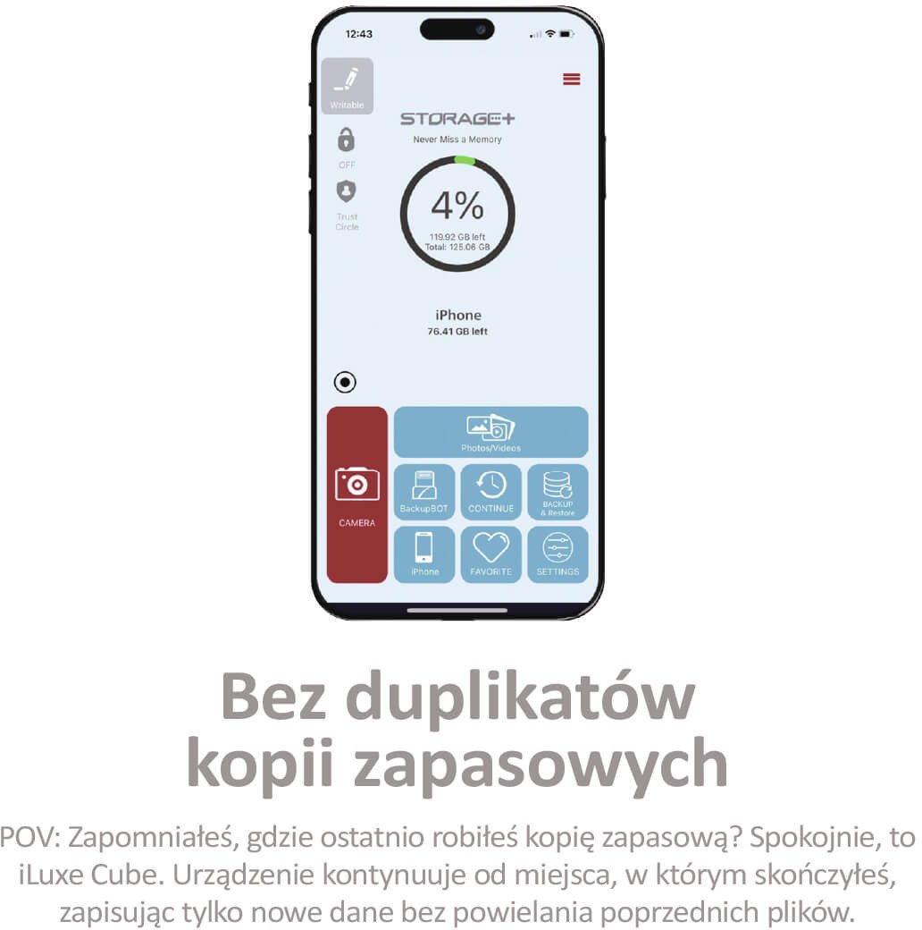 Nie musisz martwić się o bałagan w plikach. iLuxe Cube inteligentnie kontynuuje proces tworzenia kopii zapasowej od miejsca, w którym skończyło się ostatnio. Oznacza to, że urządzenie zapisuje tylko nowe dane, eliminując powielanie poprzednich plików. Dzięki temu oszczędzasz miejsce i masz pewność, że Twoje kopie zapasowe są uporządkowane. To proste rozwiązanie, które utrzymuje porządek w Twojej cyfrowej kolekcji.