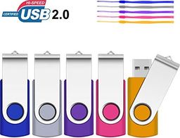 Pendrive SRVR SRVR pamięć USB, 5 sztuk, USB 2.0, przegub obrotowy, nośnik danych, napęd skokowy, zamek błyskawiczny, urządzenia zewnętrzne z wyświetlaczem LED, różne kolory ze smyczą 5 kolorów 8 GB