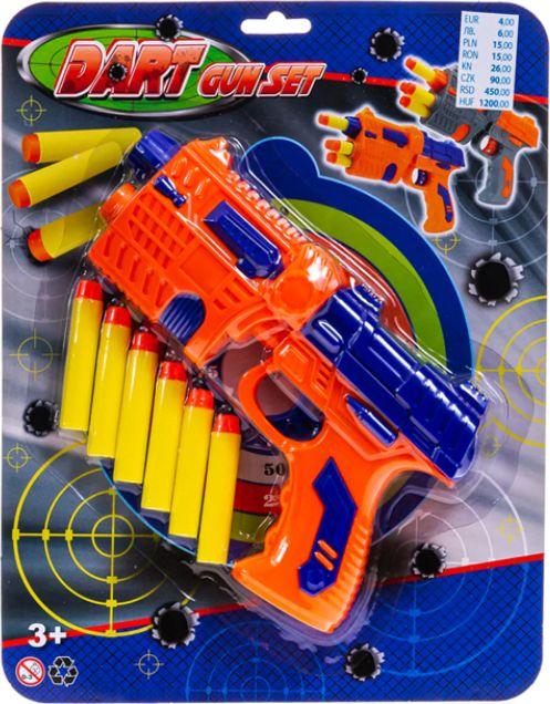 Zestaw składający się z pistoletu na piankowe pociski oraz zapasem sześciu piankowych strzałek. Różne kolory do wyboru. Zabawka przeznaczona dla dzieci powyżej 3 roku życia. Materiał 100% Polypropylene