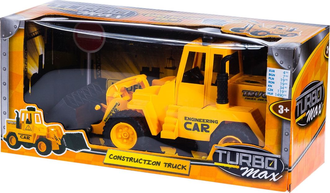 Pojazdy budowlane z ruchomymi elementami oraz napędem frykcyjnym. Długość: 30 cm. Produkt przeznaczony dla dzieci powyżej 3 roku życia.