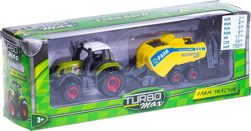 Metalowy model traktora z rolniczymi akcesoriami. Idealny do kolekcjonowania oraz zabawy w farmę. Zabawka przeznaczona dla dzieci powyżej 3 roku życia.