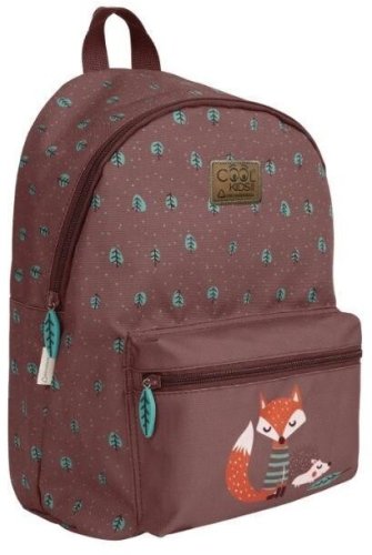 Plecak wyróżnia się pięknym wzorem przedstawiającym lisa i jeża na brązowym tle, ozdobionym niebieskimi liśćmi. Taki design nie tylko przyciąga wzrok, ale także nadaje plecakowi przyjazny i radosny charakter, co z pewnością przypadnie do gustu każdemu dziecku.