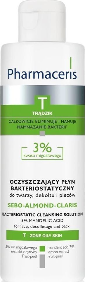 Produkt przeznaczony jest do mycia skóry dotkniętej trądzikiem. Środek czyszczący ma silne właściwości bakteriostatyczne, całkowicie hamuje rozwój bakterii i powstawanie trądziku. Głęboko oczyszcza skórę i reguluje wydzielanie sebum, aby zapobiec rozwojowi bakterii i nowemu trądzikowi. Produkt nie powoduje wysuszenia skóry. Doskonale przygotowuje skórę do dalszego leczenia produktami Pharmaceris T.
