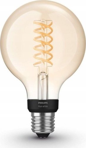 Philips Hue White Filament Globe 7W E27 G93 DIM to doskonałe połączenie nowoczesnej technologii z retro estetyką. Ta żarówka w stylu Edisona emituje ciepłe, białe światło, które wprowadza przytulną atmosferę do każdego wnętrza. Dzięki innowacyjnym rozwiązaniom, staje się nie tylko źródłem światła, ale także stylowym elementem dekoracyjnym, który wzbogaca aranżację Twojego domu.