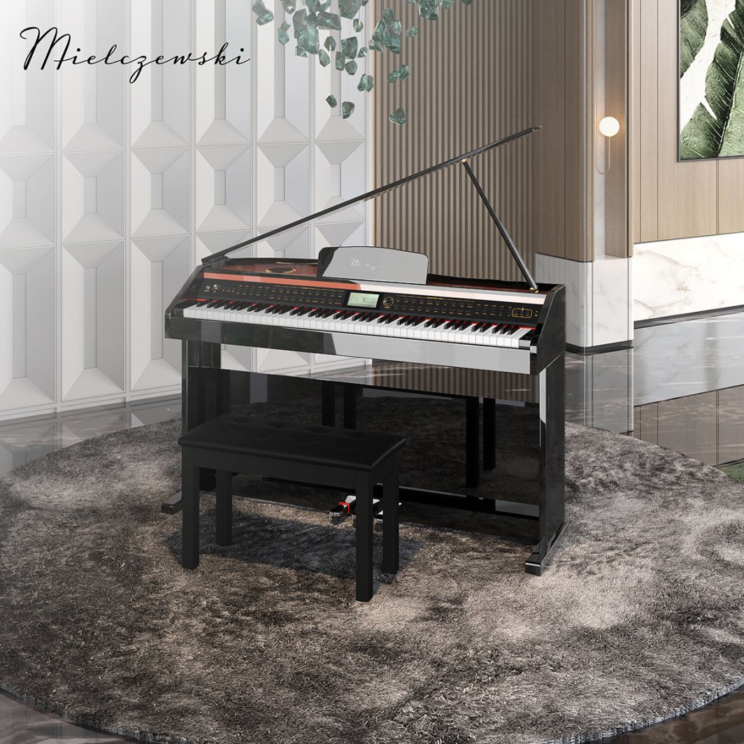 Pianino cyfrowe SONATA to doskonałe połączenie nowoczesnej technologii z eleganckim stylem. Jego czarny połysk sprawia, że idealnie komponuje się w każdym wnętrzu, a solidna konstrukcja gwarantuje stabilność podczas gry. To instrument, który zadowoli zarówno początkujących, jak i zaawansowanych pianistów, oferując realistyczne doznania, które przypominają grę na akustycznym fortepianie.