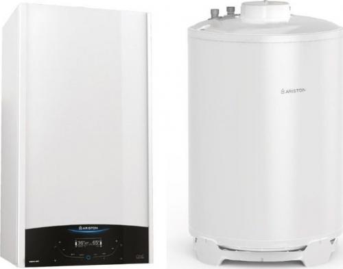 Pakiet kotła jednofunkcyjnego kondensacyjnego z zasobnikiem, regulatorem pogodowym i zdalnym sterowaniem za pomocą aplikacji na smartfon ariston net.