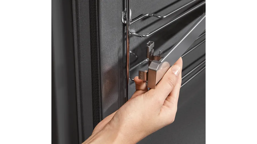 Klasyczne systemy drabinek oferują tylko do trzech poziomów dla prowadnic teleskopowych. Bosch oferuje również prowadnice teleskopowe do montażu na dowolnym poziomie. Prowadnice można zamontować na wszystkich poziomach drabinki w tym również na poziomie grilla, dzięki czemu pieczenie jest jeszcze wygodniejsze. Prowadnica jest łatwa do wpięcia i wyjęcia.
