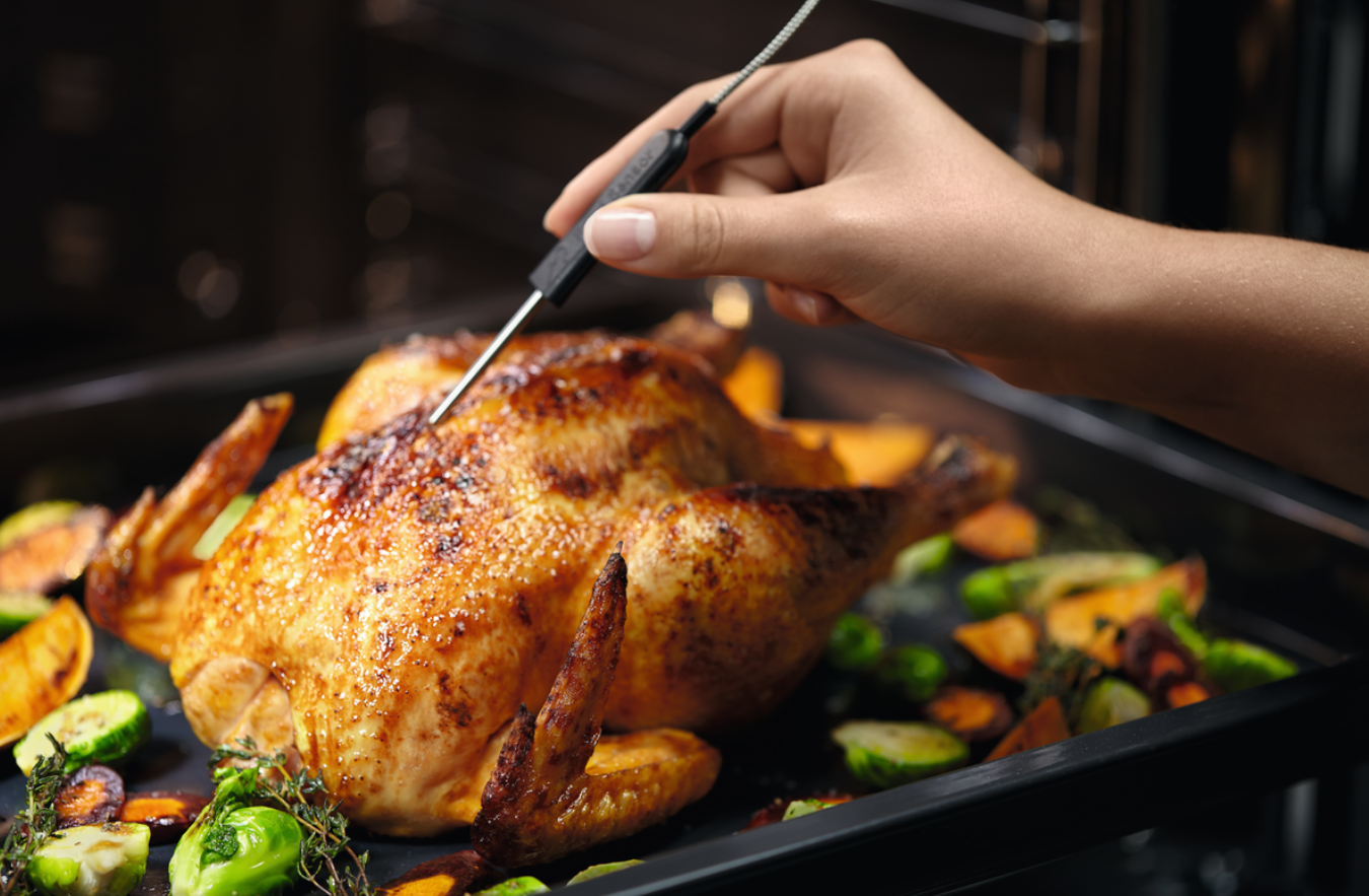 Piekarnik został wyposażony w inteligentną termosondę, która monitoruje temperaturę wewnątrz potrawy w czasie rzeczywistym. Gdy wnętrze pieczeni lub ciasta osiągnie zaprogramowany poziom, urządzenie automatycznie zakończy pracę, zapobiegając przesuszeniu dania. Czytelny wyświetlacz LCD z dotykowymi przyciskami pozwala na szybki wybór czasu, temperatury oraz jednego z wielu dedykowanych programów pieczenia. Takie rozwiązanie daje użytkownikowi pełną kontrolę nad procesem i gwarantuje powtarzalność idealnych efektów za każdym razem.