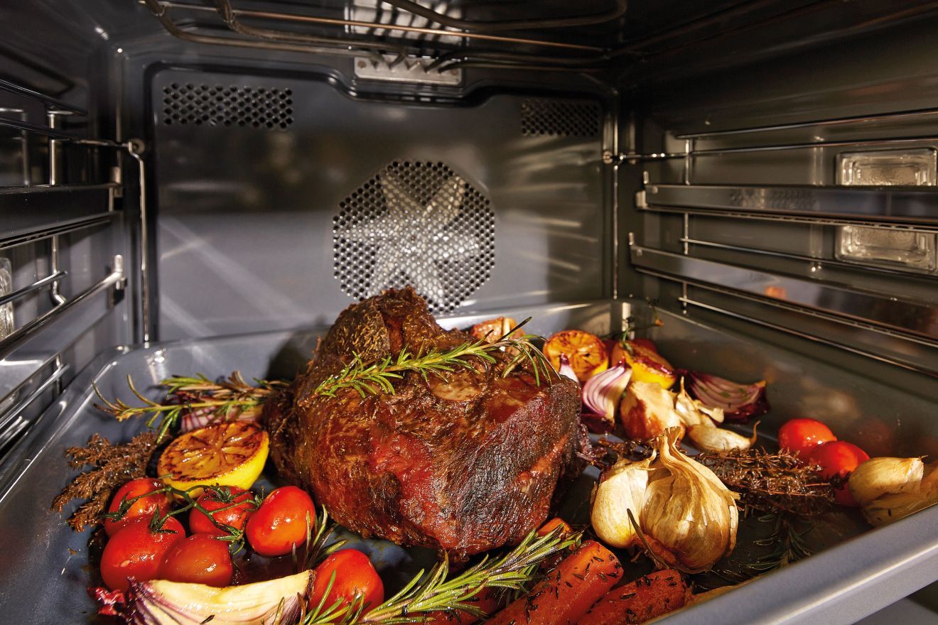 Piekarnik, teraz jeszcze bardziej przestronny, ma owalny kształt, który z powodzeniem naśladuje tradycyjne piece opalane drewnem. Pozwala to na optymalną cyrkulację powietrza, która całkowicie obejmuje potrawę, dzięki czemu jest delikatna i soczysta w środku, a poza tym niesamowicie chrupiąca. Powietrze jest jeszcze lepiej rozprowadzone w 71-litrowym wnętrzu z zagłębionymi bokami, co zmniejsza występowanie zimnych miejsc. Specjalna dynamika cyrkulacji powietrza zapewnia doskonałe warunki do profesjonalnego gotowania na pojedynczym poziomie lub na kilku poziomach jednocześnie.