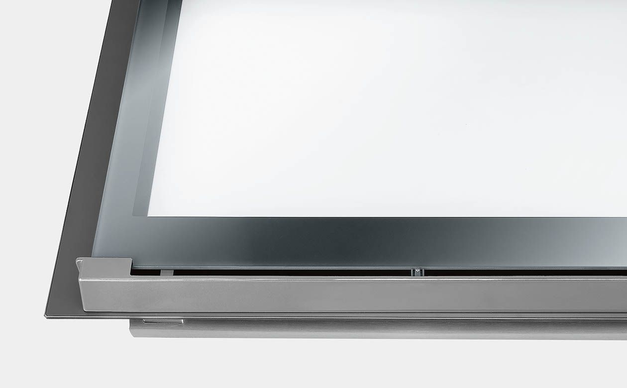 Drzwi piekarników Grundig wykonane są z pełnego szkła, bez załamań i śrub, przez co ich czyszczenie jest łatwe i wygodne. Dla jeszcze większego komfortu, szklane drzwi można łatwo wyjąć w celu jeszcze dokładniejszego czyszczenia.