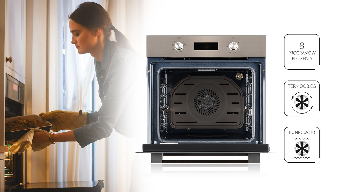 8 programów pieczenia, możliwość ustawienia czasu włączenia piekarnika i inne niezbędne funkcje sprawią, że pieczenie będzie proste i przyjemne.