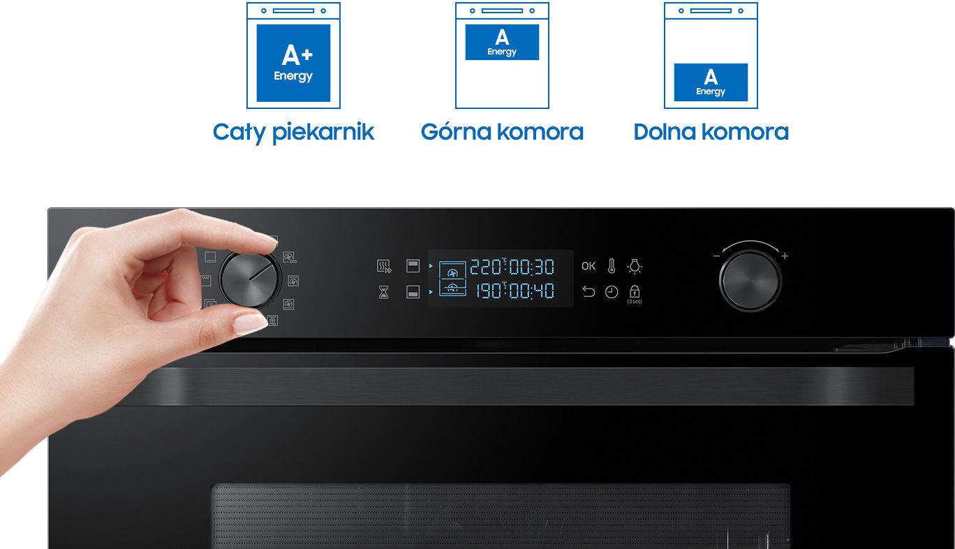Spraw, by Twój dom był bardziej energooszczędny i zredukuj rachunki za prąd. Możesz używać tylko górnej lub dolnej strefy pieczenia lub całego piekarnika i nadal cieszyć się wyjątkową klasą efektywności energetycznej A + w trybie Eco Termoobieg. Mimo takiej energooszczędności nadal możesz cieszyć się ogromną pojemnością piekarnika.