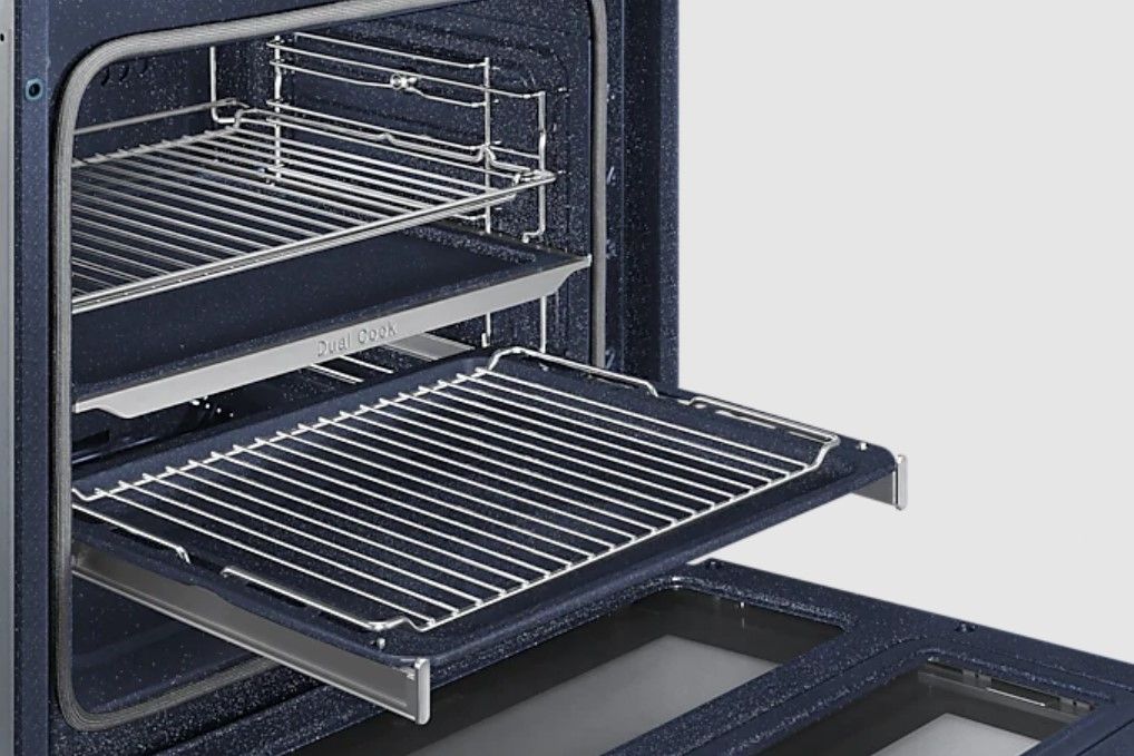 Utrzymuje wnętrze piekarnika w czystości, bez konieczności poświęcania czasu i wysiłku na szorowanie lub używanie kosztownych środków czystości. System czyszczenia pirolitycznego podgrzewa komorę, by wypalić tłuszcz i pozostałości po przygotowywaniu posiłku. Całość pozostaje nieskazitelnie czysta i wymaga jedynie wytarcia resztek popiołu. Wkładanie potraw do piekarnika i ich wyjmowanie stało się o wiele prostsze. Prowadnice w piekarnikach marki Samsung wysuwają się płynnie i są stabilne nawet wtedy, gdy stawiasz na nich ciężkie naczynia. Możesz mieszać, obracać i przyprawiać potrawy – bez bałaganu i zachlapań.