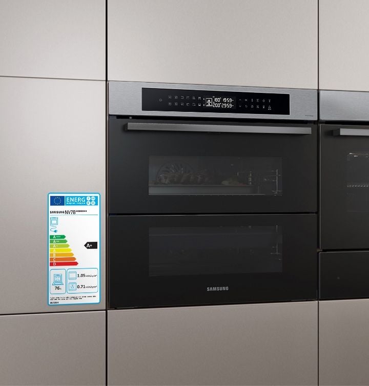 Wyjątkowa efektywność energetyczna A+ podczas korzystania z całego piekarnika. Umożliwia on oszczędzanie energii, gdyż zużywa mniej mocy. Jednocześnie duża przestrzeń użytkowa piekarnika gwarantuje pełen komfort podczas gotowania.