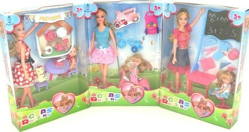 Lalka z dzieckiem i akcesoriami, różne rodzaje.