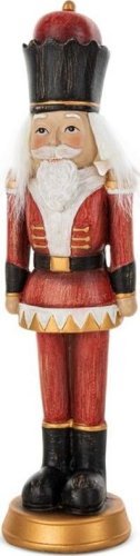 Figurka prezentuje się bardzo elegancko, dzięki czemu sprawdzi się w różnorodnych wnętrzach, wprowadzając świąteczną atmosferę. Figurka wykonana z żywicy poliestrowej dodaje uroku i świetnie prezentuje się na półce, parapecie, komodzie czy stole. Dziadek do orzechów to stylowa, minimalistyczna ozdoba świąteczna, która przypadnie do gustu szczególnie miłośnikom prostoty i nieprzepadającym za błyszczącymi ozdobami świątecznymi.
